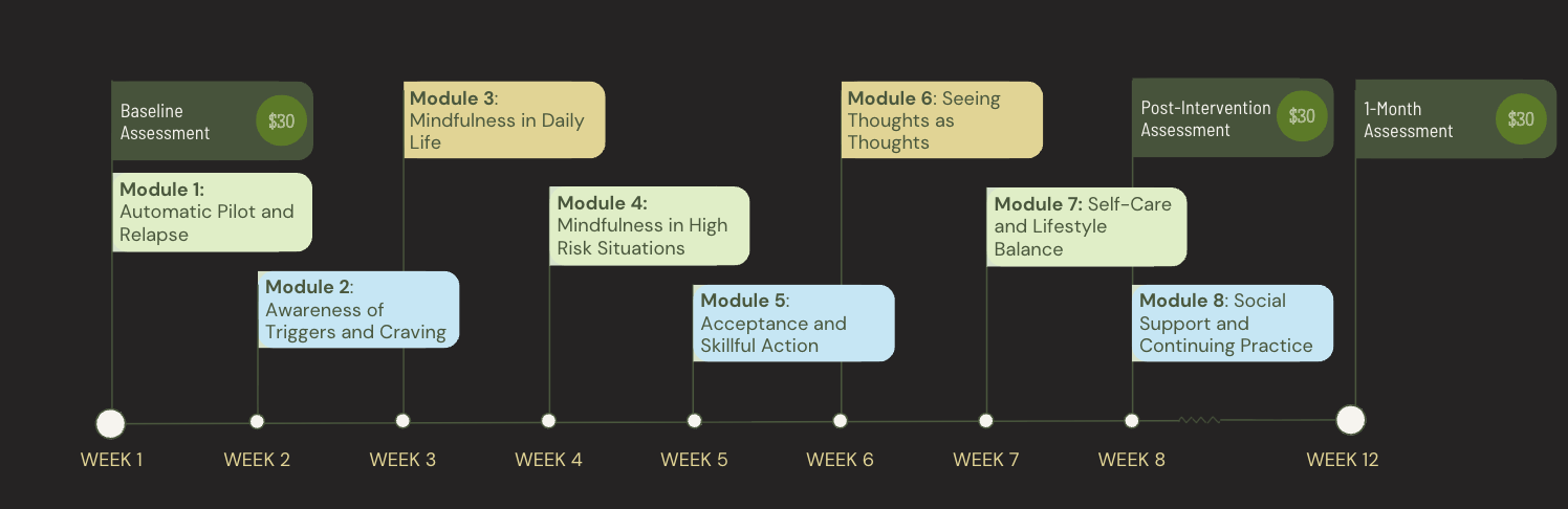 Explore the world of meditation and its profound impact on reducing stress and promoting recovery. Explore the module each week and gain valuable insights into the practice of mindfulness.